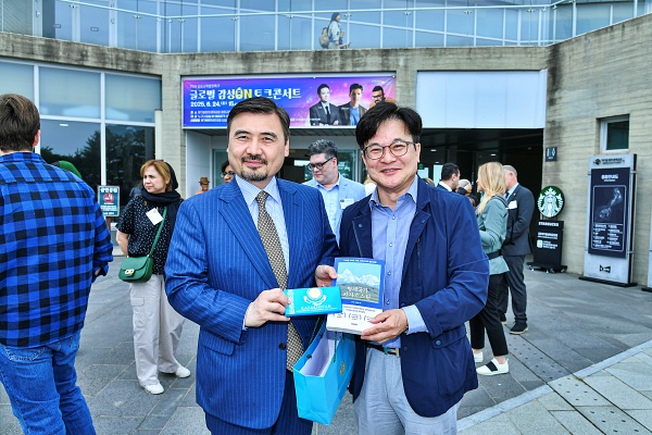 <사진설명=카자흐스탄 공화국 '누르갈리 아르스타노프' 대사로 부터 기념품을 전달 받고 있는 장면>[사진출처=김포시]김포시가 27일 주한 외교사절단을 맞이하며 국제도시로서의 잠재력을 선보