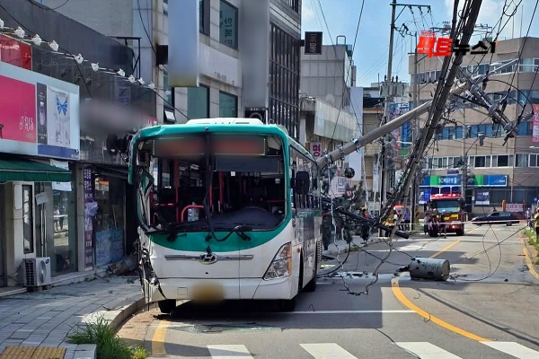 김포 시내버스 전봇대 들이받아 ‘800여 가구 순간 정전’