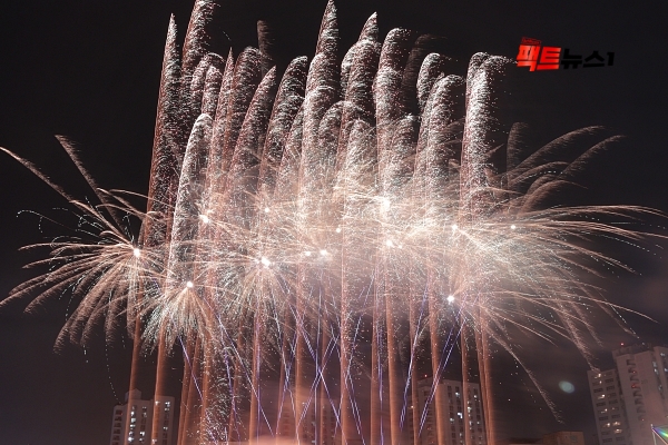 <사진설명=2025년 김포 라베니체 불꽃 축제의 한 장면>[사진=팩트뉴스1]비가 그치고, 찬 바람이 낯설게 스며들던 지난 18일 저녁. 라베니체는 어느새 환한 웃음으로 가득했다. 불꽃은 밤하늘을 수
