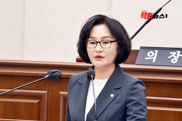 <사진설명=김현주 의원이 5분 자유발언을 하고 있는 모습>[사진=팩트뉴스1]김현주 김포시의원이 제262회 임시회 5분 발언에서 “수도권 4매립장 예정지의 85%가 김포 땅이지만, 그동안 김포시는 운