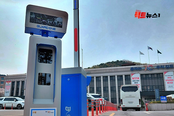 <사진설명=김포시청 주차장에 설치된 차단기 모습>[사진=팩트뉴스1]자원안보 위기라는 배경 속에서 공공부문의 선제적 대응 필요성이 커지고 있다. 이에 김포시는 승용차 2부제를 본격적으로 도