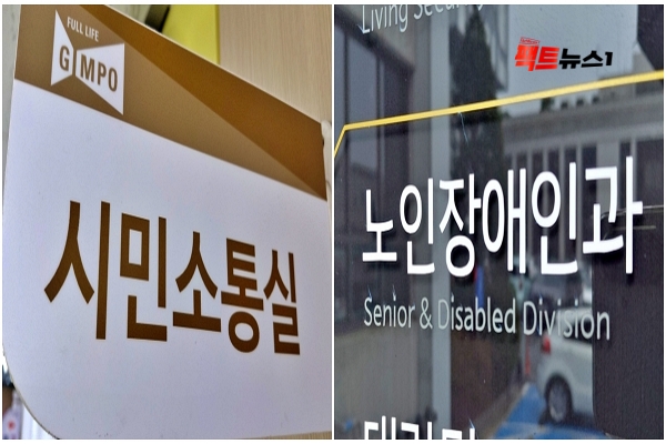 <사진설명=소통민원실과 노인장애인과 부서의 안내 펜말>[사진=팩트뉴스1]김포시가 복합민원 해소를 위한 ‘민원매니저’ 제도를 도입하며 행정 서비스 개선에 본격적으로 나섰다. 다만, 실효